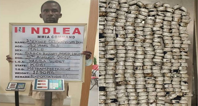 Meanwhile, the anti-narcotics regulatory agency has stated the NDLEA officers at the Akanu Ibiam International Airport, Enugu, also arrested a 50-year-old Mgbeobuna Victor Eberechukwu for ingesting 77 pellets of cocaine.
