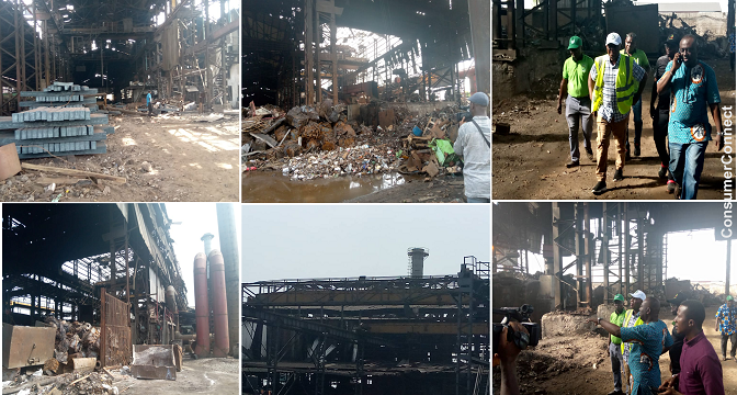 Photo collage of scenes of the incident at Phoenix Steel Mills Industries Limited, Ogijo