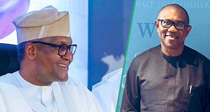 Photo Collage of Alhaji Aliko Dangote (l) and Mr. Peter Obi Credit: LegitNG