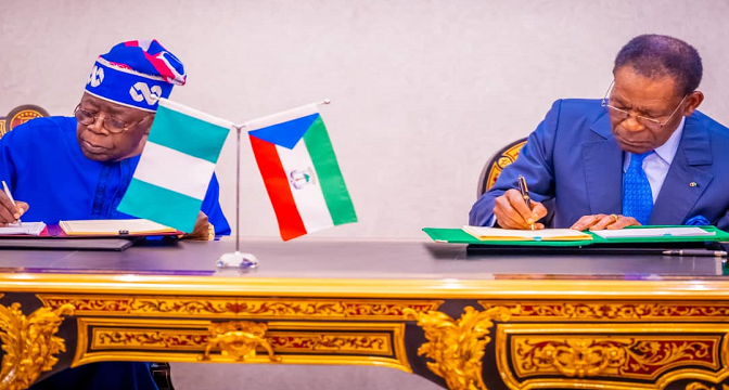 *Nigerian President Bola Ahmed Tinubu discloses the signing of the agreement with Equatorial Guinean President Teodoro Obiang Nguema Mbasogo will open up new opportunities for gas exploration and employment, stating the two leaders also discussed issues related to food security, multilateral relations, and conflict resolution mechanisms on the African continent