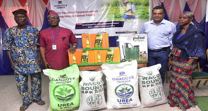 Determined to boost food production and enhance socio-economic development of its host communities, Dangote Cement, Ibese Plant, in Ogun State, has donated agricultural supplies to local farmers.