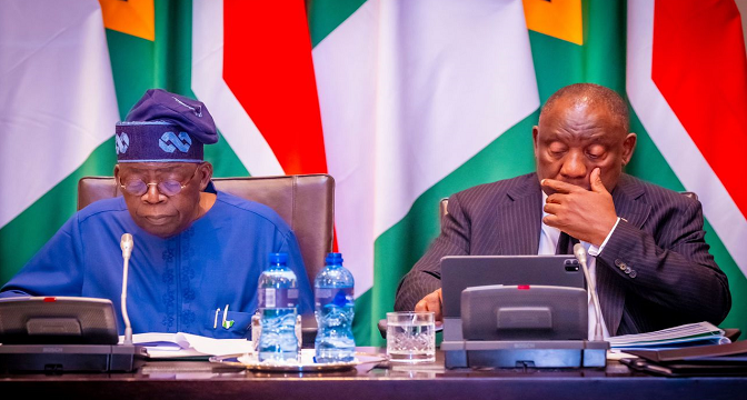 President Bola Ahmed Tinubu (l) and South African South African President Cyril Ramaphosa