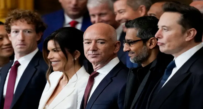 At the event in Washington, D.C., as former US Presidents greeted one another in the Capitol Rotunda, so did some of the world’s richest and technology leaders, including Mark Zuckerberg, Jeff Bezos, Sundar Pichai and Elon Musk, who are regarded as the emerging “oligarchs” in the United States.