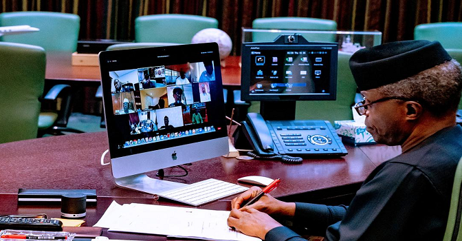 Vice-President (Prof.) Yemi Osinbajo in a virtual meeting at the State House, Abuja, FCT, recently   Photo: File
