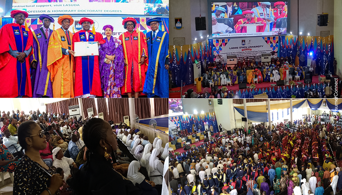 The Honorary Doctorate Degree Awardees, Dr. Obafemi Hamzat, LASU top officials, and some highlights of the Convocation Ceremony, in Lagos