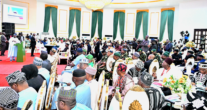 President Bola Ahmed Tinubu Addressing a Gathering of Stakeholders in the Banquet Hall of the Government House, in Makurdi, Benue State Photo: State House/Bayo Onanuga
