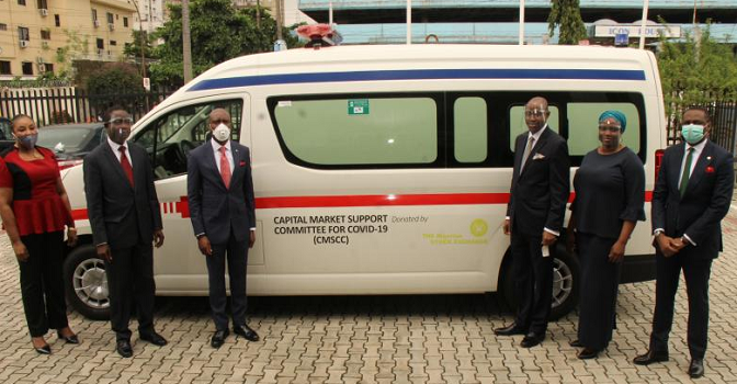 The leadership of the Nigerian Stock Exchange (NSE) has supported the ongoing efforts at curbing the spread of the novel Coronavirus disease (COVID-19) epidemic in the country with the donation of cash and ambulance to the Capital Market Support Committee for COVID-19 (CMSCC).