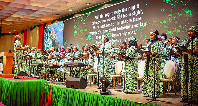 Cross-sections of the 100-Man mass choir of the Christian Association of Nigeria in the State House, Abuja