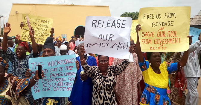 Osun State Pensioners Protesting in Osogbo Photo: ThePointNg