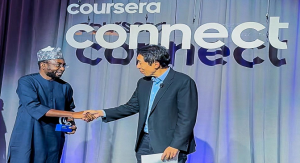 *Kashifu Inuwa Abdullahi, CCIE, Director-General of Nigeria’s National Information Technology Development Agency, receives the ‘Maximising Impact Award’ that recognises organisations that have leveraged Coursera’s offerings…