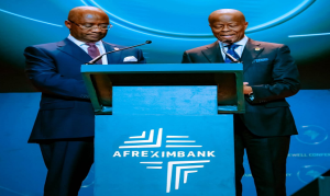 Mr. Wale Edun, Nigeria's Honourable Minister for Finance and Coordinating Minister of the Economy r) at the Swearing-in of Dr. George Elombi, New President and Chairman, Board of Directors of AfreximBank, in Caira, Egypt Photo: State House