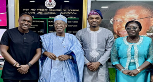 L-R: Mr. Charles Murito, Google Regional Director, Sub-Saharan Africa, Government Affairs and Public Policy; Alhaji Lai Mohammed, Minister of Information and Culture; Mr. Adewolu Adene, Google’s Government Affairs and Public Policy Manager; and Mrs. Comfort Ajiboye, Director of ICT, Federal Ministry of Information and Culture, During Google Team’s Visit the Minister in Abuja Photo: FMIC