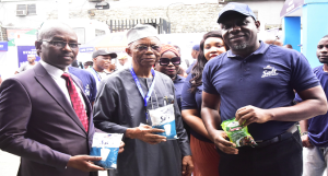 L-R: Dolapo Alli, Director of Depot and Logistics at Dangote Cement Plc; Gabriel Idahosa, President of LCCI; and Salisu Balarabe, Head of Operations, NASCON Allied Industries Plc, During Dangote Industries’ Special Day at Lagos International Trade Fair Photo: Dangote Group