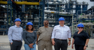 L-R: Associate Director, Sovereign Ratings, S&P Global Rating, Maximillian McGraw; Senior Analyst, Bank Ratings, Charlotte Masvongo, Vice-President of Oil and Gas at DIL, Devakumar Edwin; Director and Lead Analyst, Sovereign and International Public Finance Ratings, Ravi Bhatia, and Director, Corporate Ratings, Omegu Collocott, During S&P Global Ratings' Site Visit at the Weekend, in Lagos Photo: Dangote Group