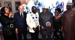 L-R: Vice-Chairman of International Chamber of Commerce (ICC) Nigeria, Prof. (Mrs.) Dorothy Udeme Ufot, SAN; Chairman of International Chamber of Commerce (ICC) Nigeria, Chief Raymond Ihyembe; Chairman of Dangote Cement Plc, Special Guest of Honour and Keynote Speaker, Emmanuel Ikazoboh, Receiving the Peace and Prosperity Award; ICC Nigeria Treasurer, Dr. (Mrs.) Omolara Ololade Akanji; and Head of International Trade/Export at Dangote Cement Plc, Sada Ladan-Baki, at the 2025 ICC Nigeria Annual Dinner and Dance in Lagos Photo: DIL