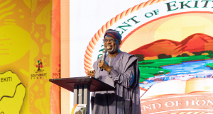 Dr. Dele Alake, Honourable for Solid Minerals Development, Delivering HIs Address at the South-West Leaders' Conference, in Akure, Ondo State Capital Photo: State House