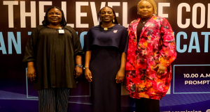 Omotayo Mohammed, Head of Competition and Tariff of NCC (middle) and Other Dignitaries at the Stakeholders’ Forum on the Study on the Level of Competition in the Nigerian Telecoms Industry, in Lagos
