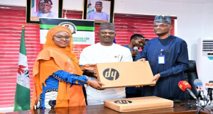 *Dr. Aminu Maida, Executive Vice Chairman and CEO of the Nigerian Communications Commission, asserts the recent donation of 50 sets of HP computer laptops to…